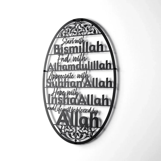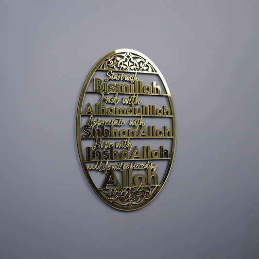 4 Dhikr Metal Islamic Wall Art - Bismillah, Alhamdulillah, Subhanallah, Inshallah