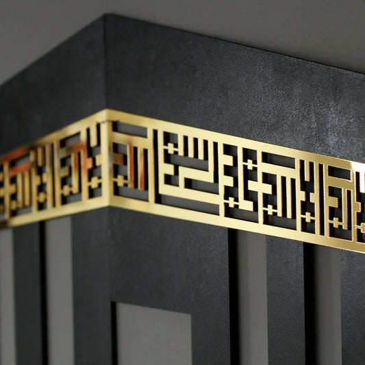3D Kaaba Wall Art With Kufic First Kalima - Wood Islamic Wall Art