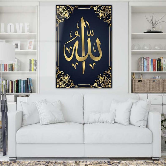 Allah Calligraphy Vertical, UV Printed Glass Wall Art - Islamic Decor