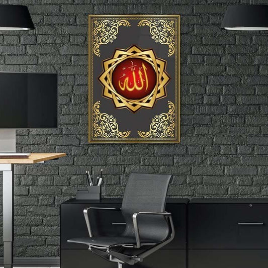 Allah & Waus Islamic Glass Wall Art, UV Print Arabic Calligraphy Decor