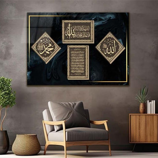 Allah & Muhammad & Ayatul Kursi & Kalima Shahada Islamic Glass Wall Art