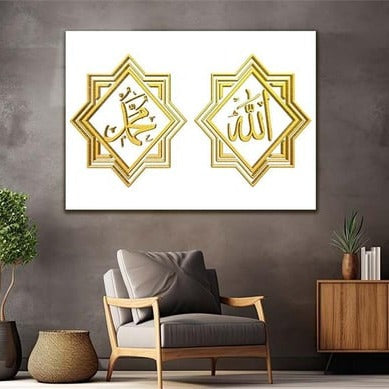 Allah & Muhammad Islamic Glass Wall Art, UV Print Calligraphy Decor