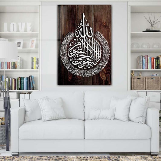 Ayatul Kursi Vertical Glass Art, Islamic Decor | UV Printed | Elegant