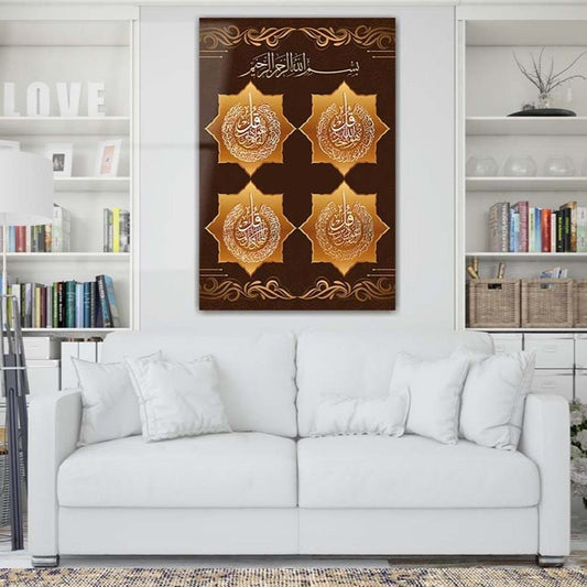 Ihlas & Felak & Nas & Kafirun Surahs - Islamic Vertical Glass Wall Art