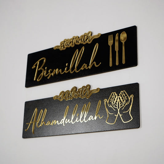 Start With Bismillah, End With Alhamdulillah Islamic Wood Wall Art