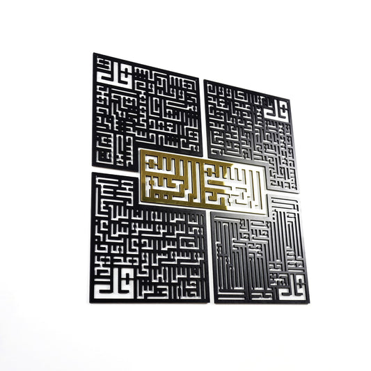 4 Qul Surahs Kufic Islamic Wooden Wall Art, Al Falaq, An Nas, Al Ikhlas, Al Kafirun